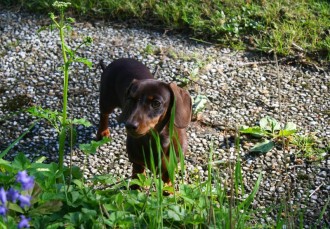Unsere Blume ist ein ganz besonderer Hund. Sie ist schokobraun, was eher selten ist. Uns begeistert ihr lustiges, lernwilliges Wesen. Sie ist sehr selbstbewußt und tobt mit Amelie und seit neuestem auch mit unseren Welpen.