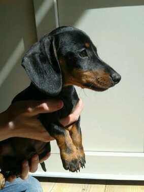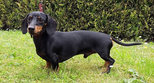 Er ist ein schwarz-roter Rüde mit schönem Brand und einem ansprechenden Kopf. Alles weitere wird man mit der Zeit sehen.