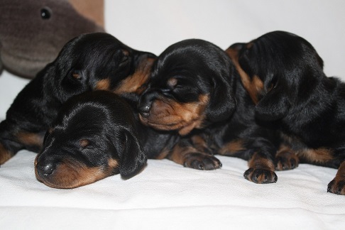 Unsere vier Welpen sind am 21.03.2015 gechipt, geimpft und von der Zuchtwartin abgenommen worden.