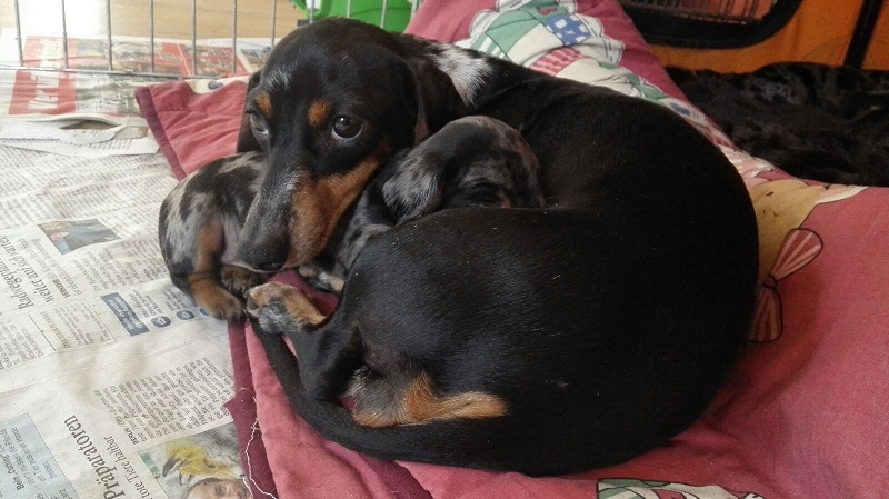 Die Welpen kommen ganz nach dem Vater, wie man sieht: